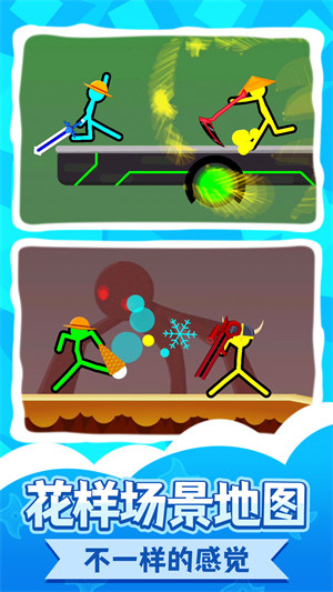 惊魂火柴人2手游是一款有趣的火柴人游戏,玩家将在游戏中操控自己的火柴人和另外一个火柴人进行激烈的对战,玩家在游戏中将会面对很多的敌人,游戏中的画风是很简约好看的,玩家在游戏中需要表现出很激烈的打斗,快速的击败对面的敌人。
