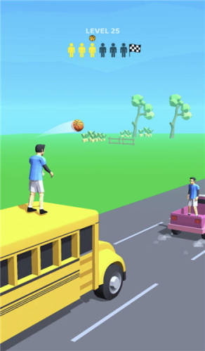 车顶玩个球手游是一个非常有趣的传球游戏,在这个游戏中你要控制一个人站在车顶,然后把球向前扔到下一个人的手里,那个人也同样是站在车顶的,所以玩家要充分考虑车速、惯性、风向等因素,游戏玩法非常新颖,虽然玩法简单,但是也需要经过深思熟虑,非常有趣。