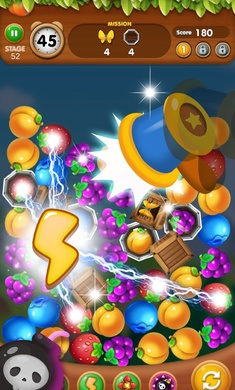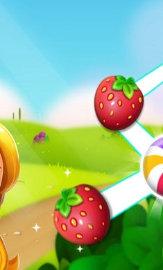 -经典的三消玩法,使用手指在卡通水果上滑动,擦除并消除障碍;