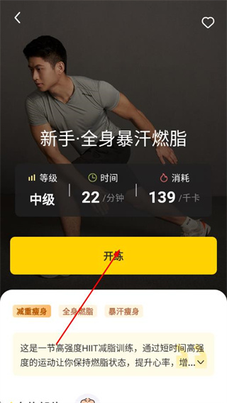 3、在课程详情页点击开练,即可开始该课程的锻炼。
