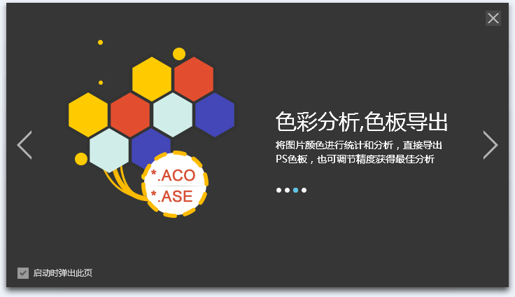 将图片颜色进行统计和分析,直接导出PS色板,也可调节精度获得最佳分析