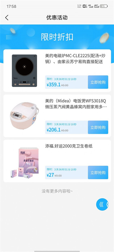 家家惠购物软件是一款非常实用的购物软件,平台上会实时保存浏览过的商品和购买信息,还有收藏夹等功能,也能实时保存用户感兴趣的商品,定时软件还会推出秒杀,放出优惠券等活动,这样在付款时就有更多的选择性,拼团活动也是非常有趣,费用也可以减少很多,每天都会推出当天上新的产品,和前一天的消费量排行榜,给其他用户也有更多的选择。