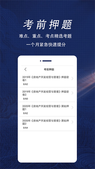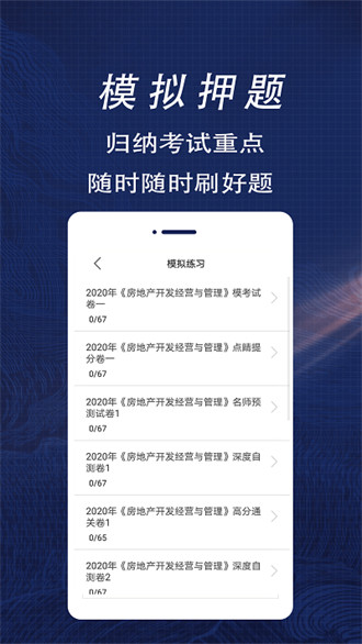 房产估价师全题库app是一款房产估价师考试完整的练习册软件。知识获取效果最全面,系统复习指导,结合各章节知识和练习题,模拟真题,测试你的学习成绩,提供最新的日期资讯报名以及成绩查询与证书申领,软件内部有多种历代真题和模拟题,题库出题完美模拟真题,可以随时体验手机上模拟考试,在规定时间内完成考试,快速评分的模拟训练程序。