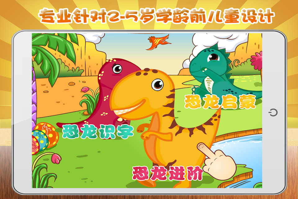 宝宝恐龙英语app这是一款由教育专家根据多年早教经验,针对2-5岁学龄前儿童,精心设计的,高品质英语单词和字母的学习应用。与剑桥少儿英语初级教材完全同步,集合了各种不同类别的儿童单词,并在此基础上添加了丰富的情景演示、英文动画,由浅入深,循序渐进,逐步带领孩子走入英语学习的大门。