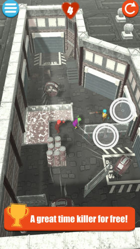 反弹特工是一款玩法比较独特的休闲特工游戏,这款游戏玩法独特之处在于每一关的地图上都会出现几个比较大的风扇,它们会朝着不同的方向吹风,甚至可以把人吹起来,玩家作为特工就是要利用这几个风扇快速移动,以最短的时间接近敌人消灭他们并救出人质。