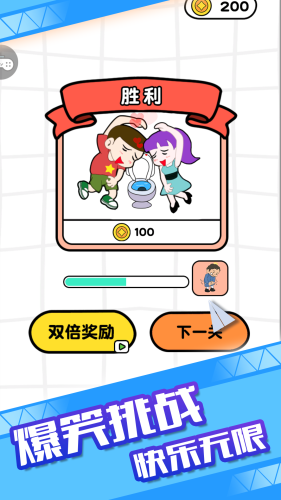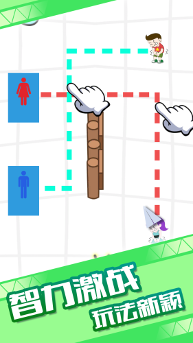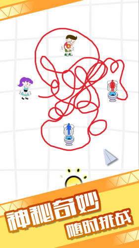 啊啊我憋不住啦手机版是一款搞笑的画线上厕所游戏,玩家需要拯救快憋坏了的人,帮助他们寻找前往马桶的路线,非常的搞笑,游戏操作简单,拖动手指画线即可,但是这非常考验玩家的思维和想象力,因为不能让两人在上厕所的途中撞到一起,玩家必须仔细设计路线。
