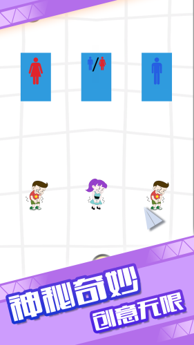 1、游戏中的角色根据设定点的玩家画出的线条开始平滑的移动,游戏的目标是尽可能地让角色去洗手间;