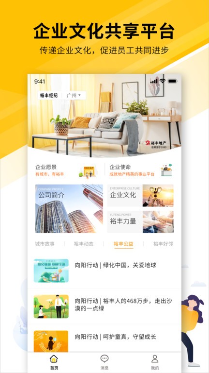 2.传递企业正能量,发布最新动向和公益活动,一键电话联系,分享优秀店长和经纪人的成功经验;