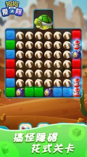 狗狗爱消除玩具炸弹手机版是一款具有挑战性的消除手游,玩家将在游戏中带领一只可爱的小狗进行闯关,完成各种三消任务,游戏玩法非常简单,玩家只需要动动手指点击屏幕上相同图案的方块即可完成消除,主要还是考验玩家的观察力和计算能力,还是比较有挑战性的。