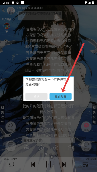 4、下载音频需观看广告,点击下方立即观看按钮,在完成观看后即可下载。