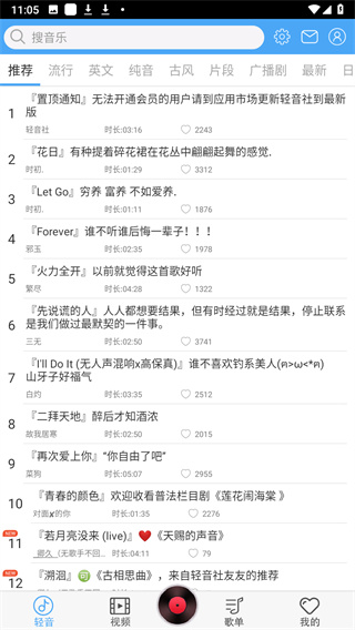 輕音社1.4.0.0为各位打造一个全新的音乐收听类的平台工具,在这里可以找寻到来自各个风格的音乐选择,还可以欣赏到各种好玩好看的视频内容,从中无论是古风音乐还是二次元音乐、纯音乐等音乐类型都可以从中快速的收听下载。