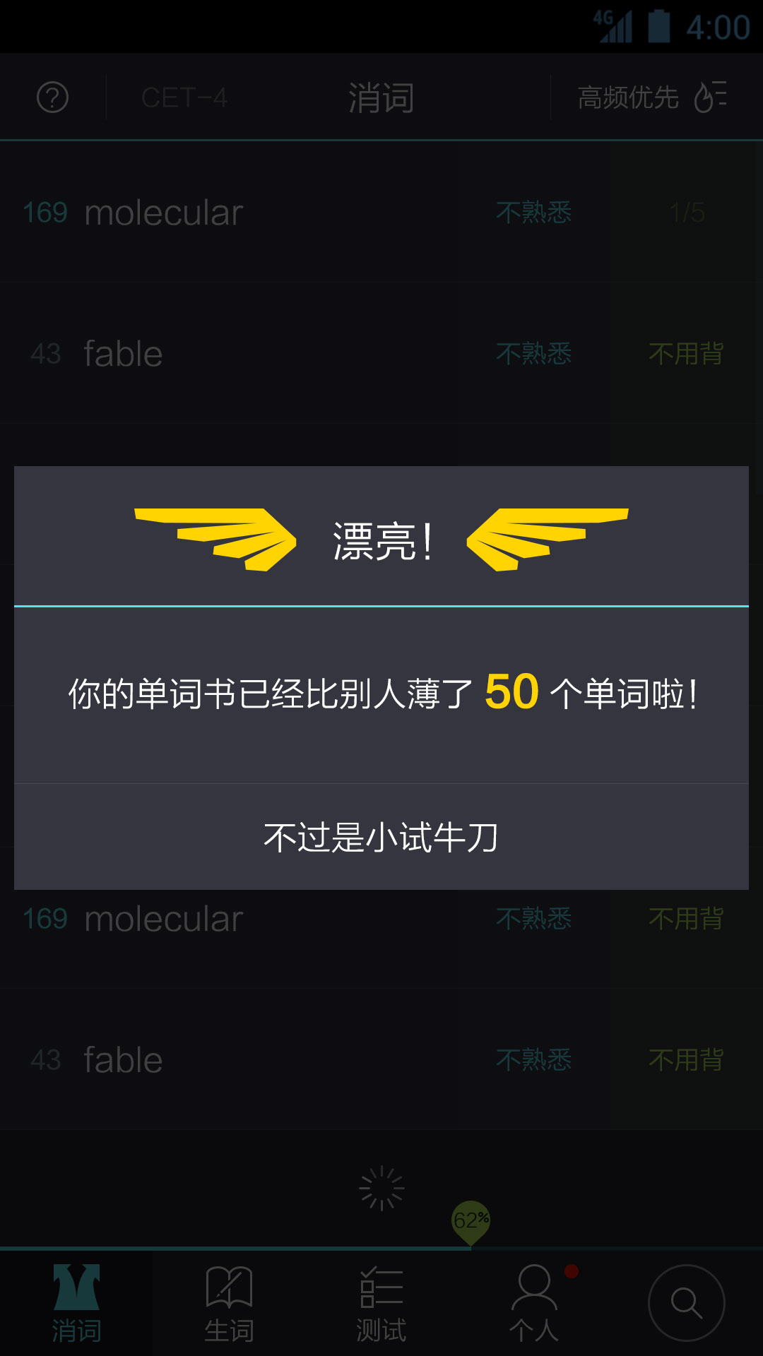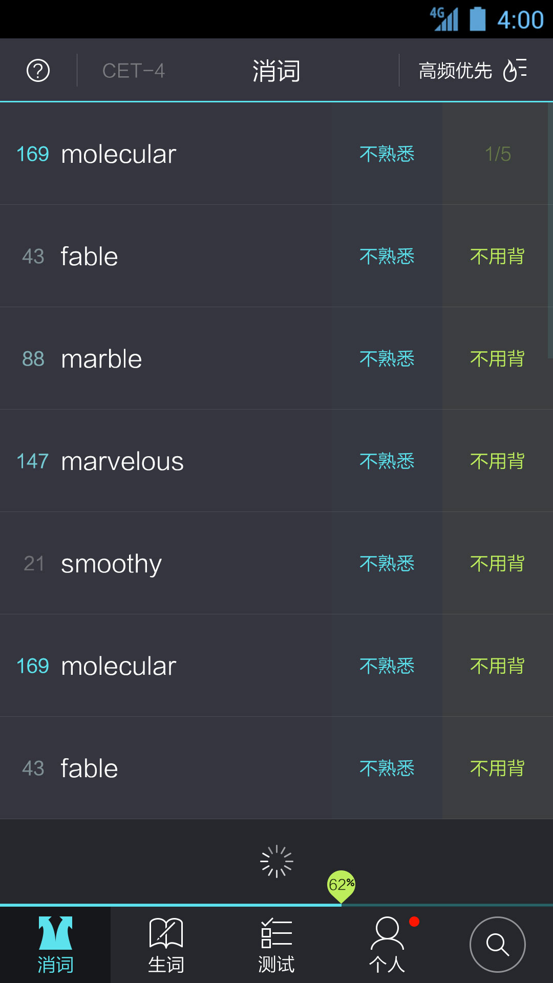 躺赢单词,这是一款学习的软件,专注于四级和六级,拥有丰富的词汇,提供生词本和测试,让你可以随时的测试和管理你的英语学习情况。靶向CET-4及CET-6考试,多维度减轻负担,利用任意碎片时间学习记背核心考词。划掉滚瓜烂熟的扎根儿词,咔嚓掉不看都会的小白词,让你拥有个性化的核心词汇,不再需要千篇一律的大厚本,不再是abandon开头。