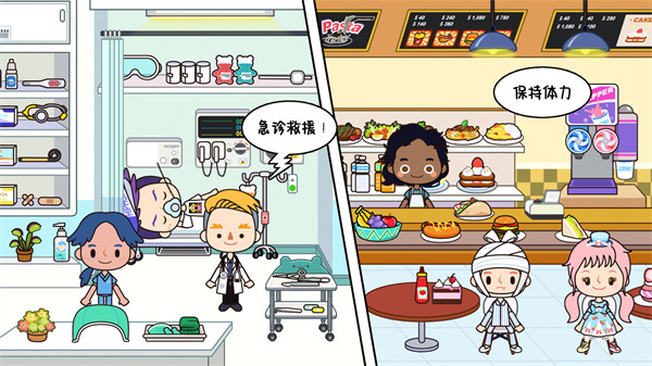 米加迷你医院世界手机版是一款模拟经营游戏,玩家可以在游戏中选择适合自己或者是自己喜欢的角色进行扮演,游戏中有儿科医生,有外科医生,还有护士等,玩家的选择范围很大,甚至可以是医院餐厅的老板哦,自由度超高,等你来玩。