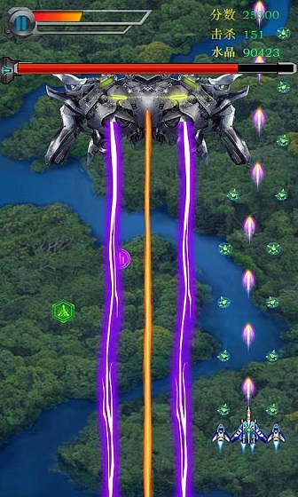 - 战斗画面,点击屏幕滑动来控制战机移动!战机为自动射击!