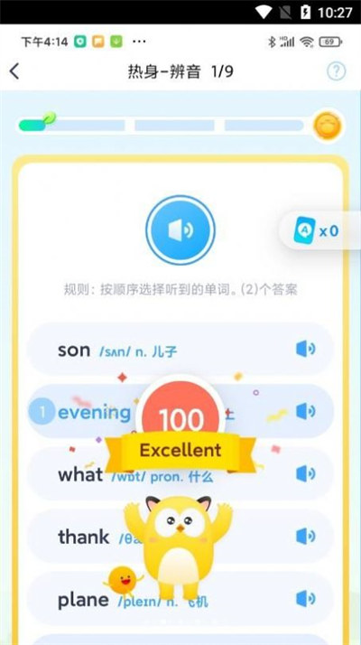 爆炸英语app是一款非常实用的联系英语的软件,可以更高效的完成学习英语,整体提高英语能力,整个软件都采用了更加鲜艳的颜色,能够更加快速的让小朋友集中注意力,并且能对应于更加感兴趣,软件上更多的是采用了卡通的形象,让小朋友能更加喜爱这个画面,提高自己的学习效率,同时可以在软件上进行相应的口语练习,让自己的口语也更加的标准。