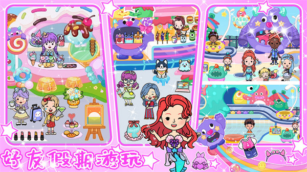 我的小镇乐园世界手机版是一款模拟经营游戏,玩家将在游戏中进行有趣的冒险,游戏的画面设计是梦幻又可爱的,海量的道具,丰富的服饰,在游戏中建立独属于自己的特别角色,搭建美丽的家园,自由的装扮自己的角色。
