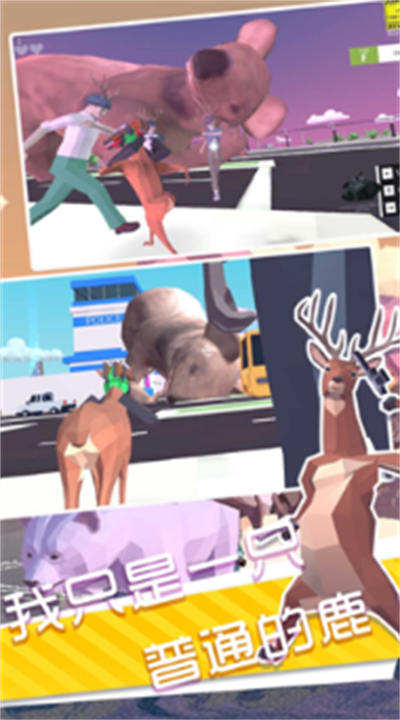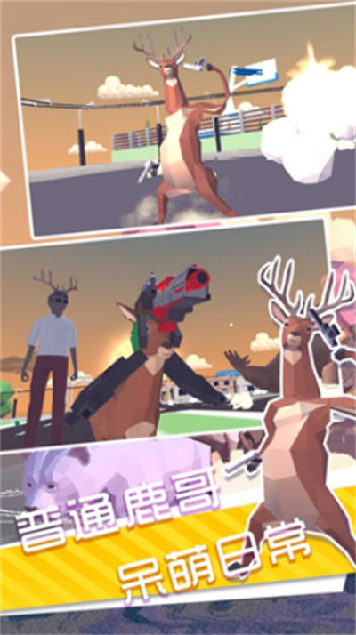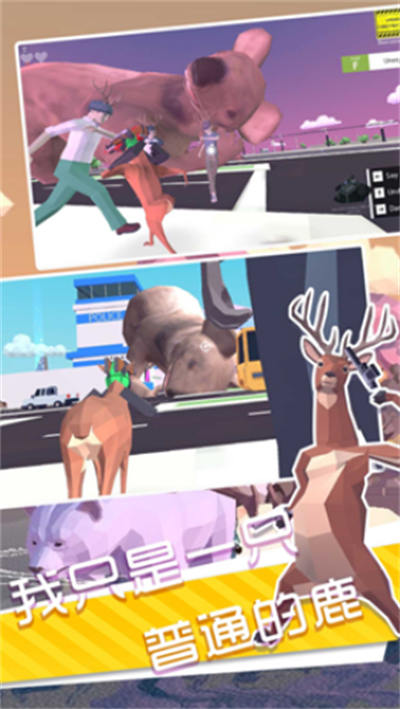 动物崛起模拟器手机版是一款魔性的搞笑动物格斗模拟器,这款游戏中玩家作为“沙雕”鹿哥,主要任务就是在城市中自由的冒险,随意的破坏,将人类击败然后踩在脚底下,鹿哥可以使用丰富的武器和技能,那些人类完全不是对手,随随便便就可以打趴下。