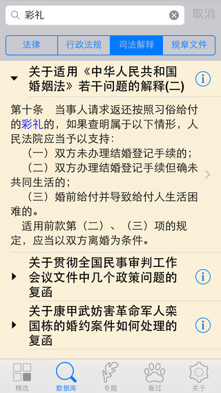 看法iPhone版是一款具有强大检索功能的移动法律数据库,为法律人士提供快速的法律查阅功能,如果您有法律方面的需求,不妨下载使用!
