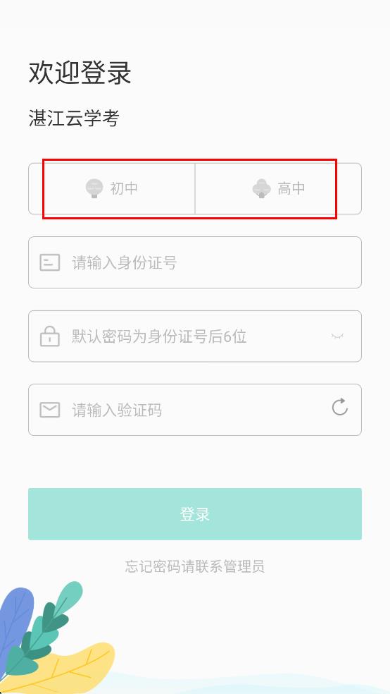 2、在登录页面,根据自身学段,点击“初中”或“高中”选项,选定学段。