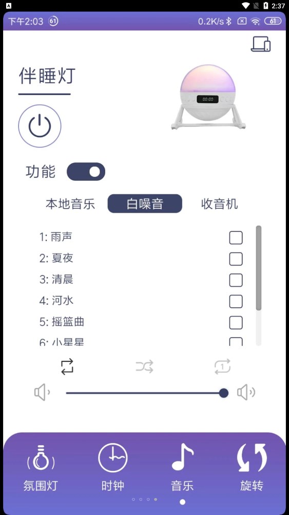 1、这款APP搭配睡眠灯能给您带来更加柔和的灯光,助您入眠、增进健康。