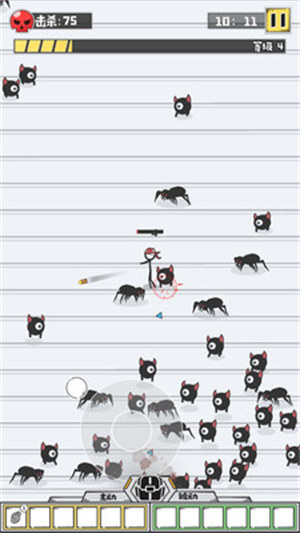1、纸攻简洁顺畅的运作方式,需要玩家灵活机动,出手自如,玩家也可通过提升天赋、装备等途径,增强火柴人生存能力。