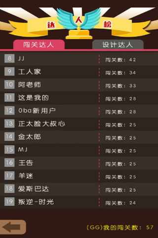 增加达人榜,增加玩家之间互动,让玩家感受更多的成就感