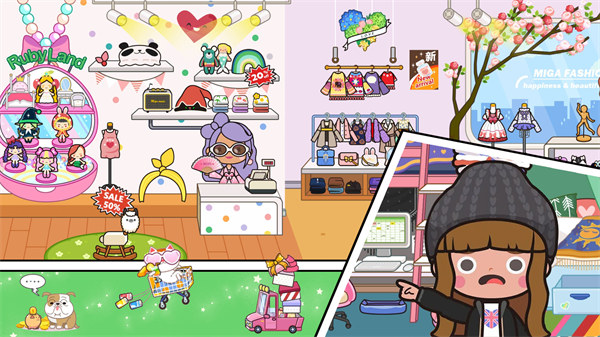 米加迷你商店购物游戏是一款休闲模拟游戏,玩家可以在这个小镇做自己想做的事情,在这里喝咖啡享受自己的下午时光,在这里逛商场打发自己的闲暇岁月,自由的打造自己的角色形象,将自己的外表打造成自己喜欢的样子。