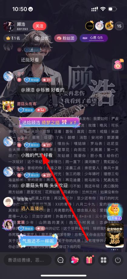 3、点击主播头像或直播封面,进入对应的直播间观看直播。
