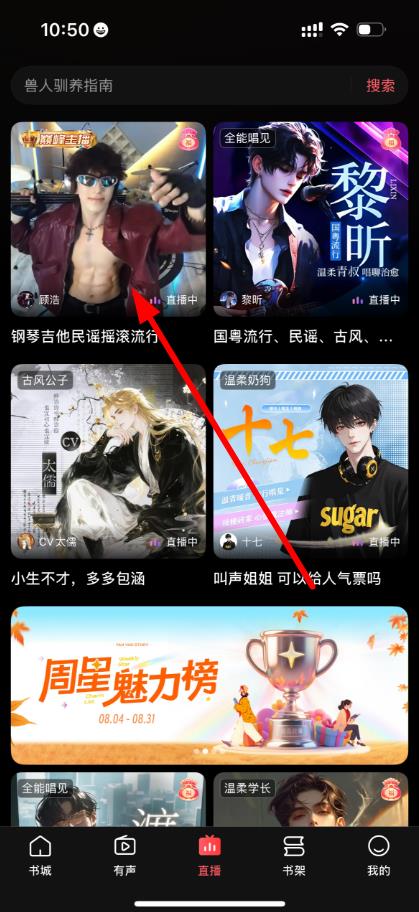 2、进入直播页面后,浏览主播列表,选择感兴趣的主播。