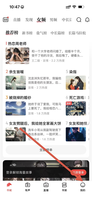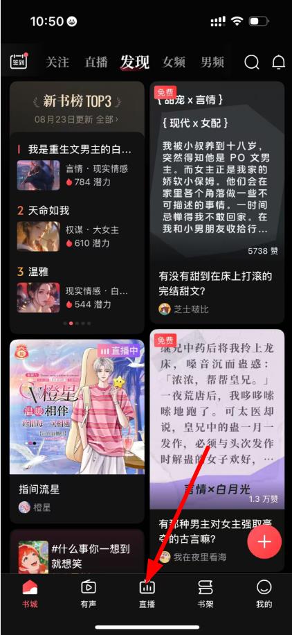 1、打开盐言故事App,点击底部导航栏中的直播选项。