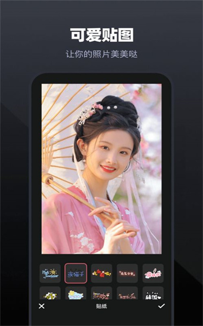 1、软件的图片素材库也是非常多,可以自己修改图片的时候用上免费提供的贴纸来装饰。