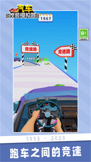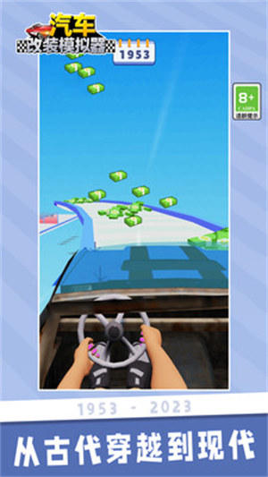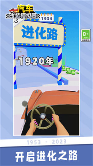 汽车改装模拟器是一款休闲改装游戏,玩家将在游戏中随着年代的变化,不断的改进自己的汽车,使自己的汽车功能越来越强,画面设计是简约的,第一视角的人称,汽车的内饰也算比较细腻,可以给玩家比较真实的体验。