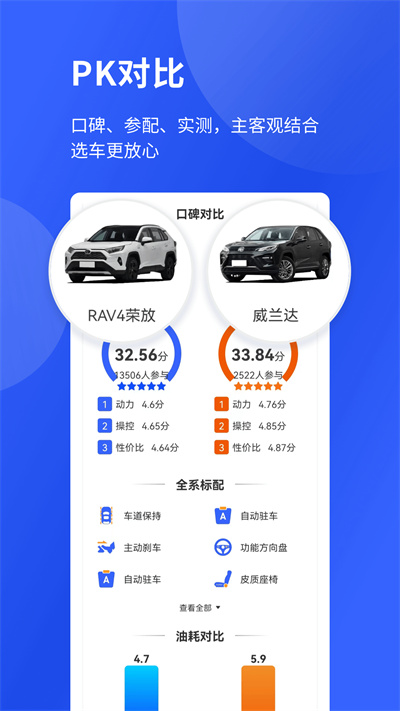 3、还会有同类型的车辆进行对比,对比下来查看数据可以觉得是否去试驾。
