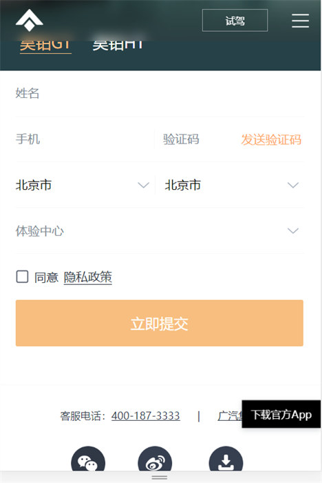 3、输入用户们自己个人的手机号和验证码去进行预约试驾的操作;