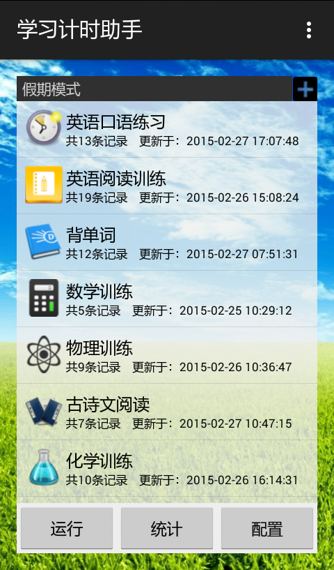 相信不少同学有过这样的感觉:每天都是在浑浑噩噩中度过的,总是不知道自己每一天干了啥。学习计时助手可以让你知道你每天的每个时段做了什么,每一项学习学习任务做了多长时间,从而帮助你更加充分地利用宝贵的学习时间,提高学习效率,为你的学习提供动力,帮助你充充实实地度过每一天的学习时光。从现在开始,让我们共同为梦想而奋斗吧!
