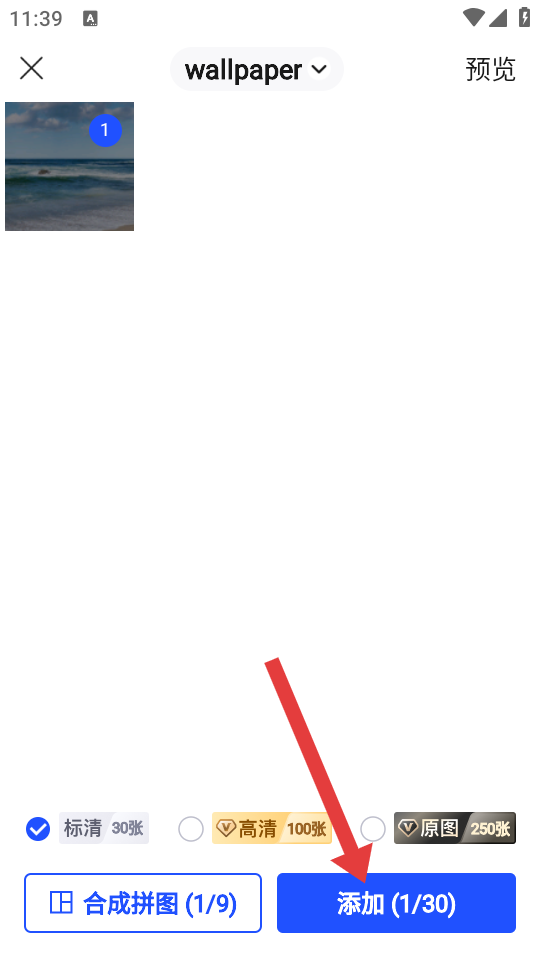 3、在本地相册中选择需要的图片后,点击添加按钮,将图片导入简篇创作流程。