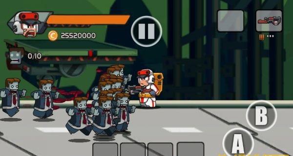 你需要灵活地进行左右手配合,用左手操纵人物的走动,右手点击屏幕进行射击,对接连不断出现的僵尸给予惩罚。得到足够的分数后还可以给你的武器进行升级。
