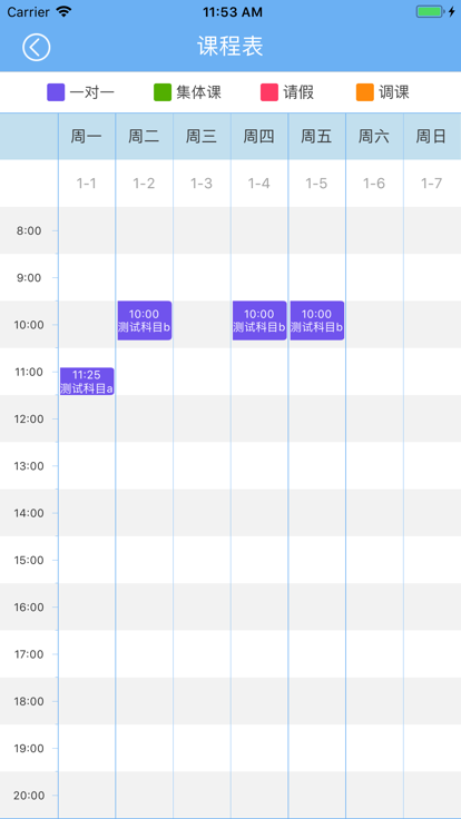 2、课程表清楚显示课程安排的情况,合理调整时间,可到本人所在网站观看课时数,余课。