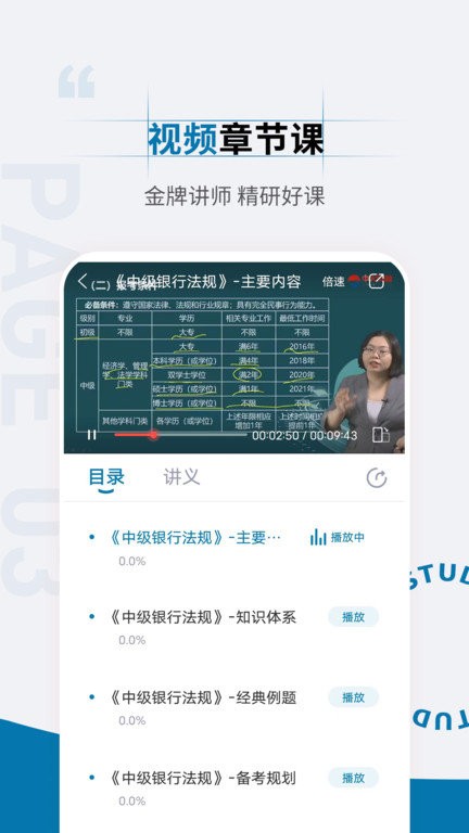 2、覆盖了银行从业资格考试大纲所规定的考试内容,自由精讲视频教学;