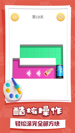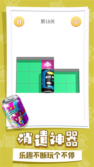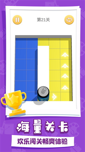 翻滚涂色游戏是一款休闲益智游戏,玩家可以在游戏中挑战使用易拉罐进行涂色,疯狂的进行翻滚,自由的滚出一些乐趣,还有很多的炫酷操作等待着玩家的尝试,轻松的涂完所有的方块,获得不错的游戏体验,还是一款消遣的神器哦,玩家可以玩个不停,海量的关卡等待着玩家的挑战,尽情的享受特别的体验,放松自己的身心。