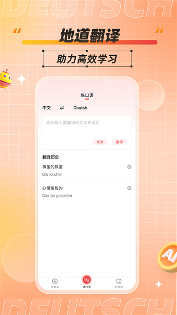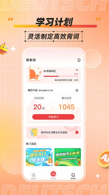 德语学习背单词app是一款实用词汇记忆应用,可以用来背单词以及德语练习的易用教育软件,你可以在课下进行相互补充,选择各种不同的练习方式进行系统性的练习,这里还有很多最新玩法任君选择,独享其乐趣。