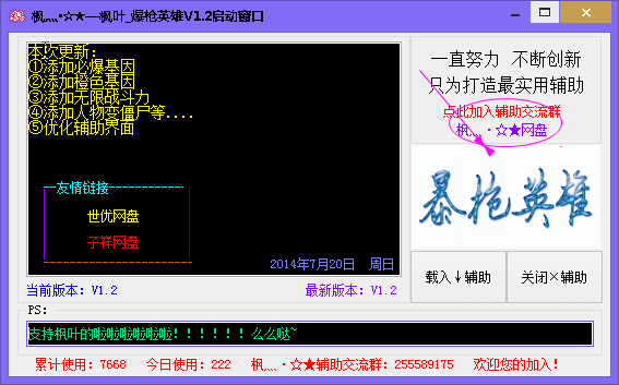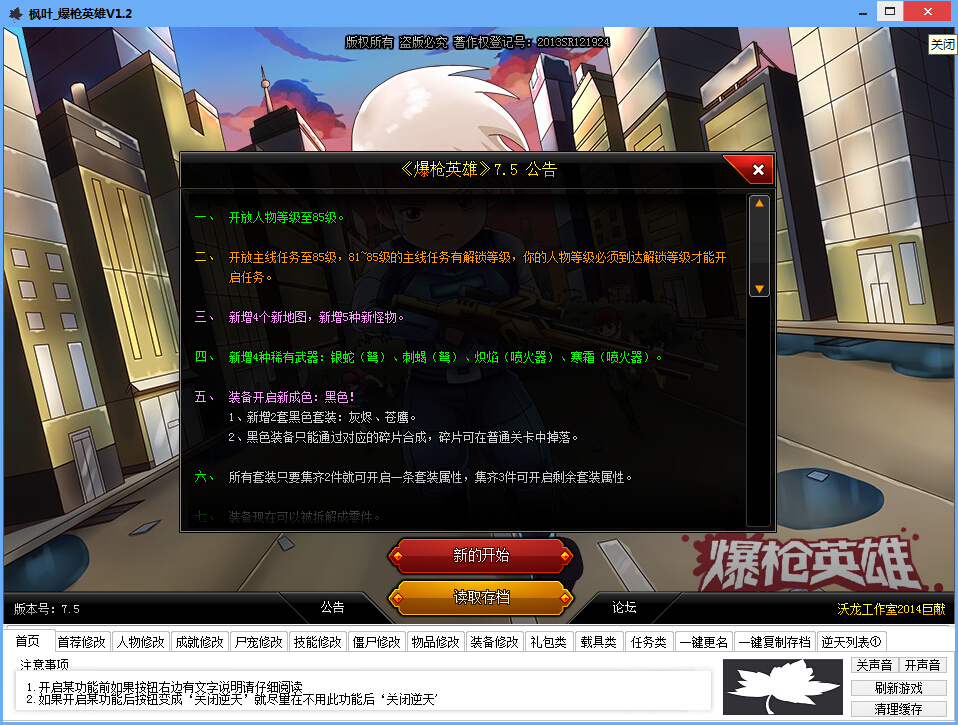 枫叶爆枪英雄辅助二代是《枫叶爆枪英雄辅助》的第二代作品,相比前代,辅助的功能更加强大,新增无限银币、秒升等级、变态装备等功能。更多变态功能等你来体验!让你玩游戏更轻松。