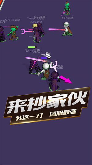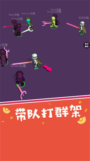 全都跟我冲是一款休闲竞技游戏,融合了格斗、休闲和竞技等多种元素,游戏中,你可以参加别具一格的竞技比赛,并通过自己的克隆进行战斗,全新的玩法模式给人一种新鲜感和刺激度,此外,玩家要想成为真正的强者,需要准确的战略安排。