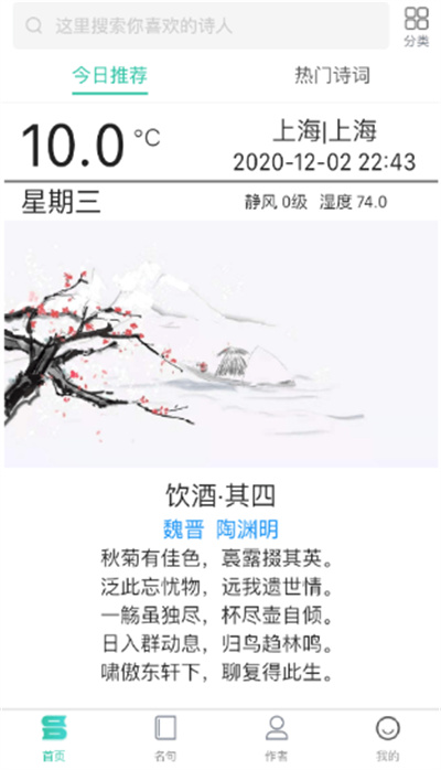 3、对于作者会有非常详细的解释,遇到特殊节日会给你推荐相关的作者或者是诗词。