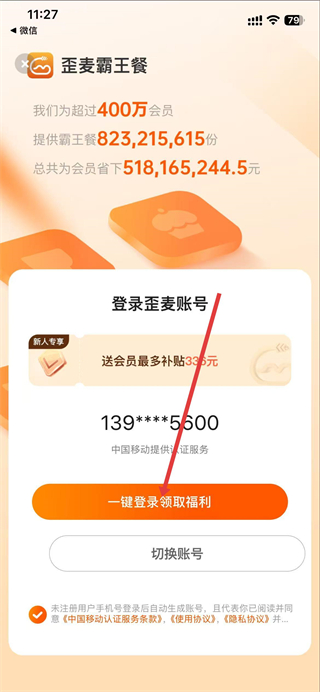 4、点击一键登录领取福利按钮,即可完成账号登录。
