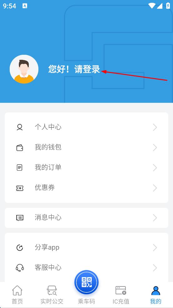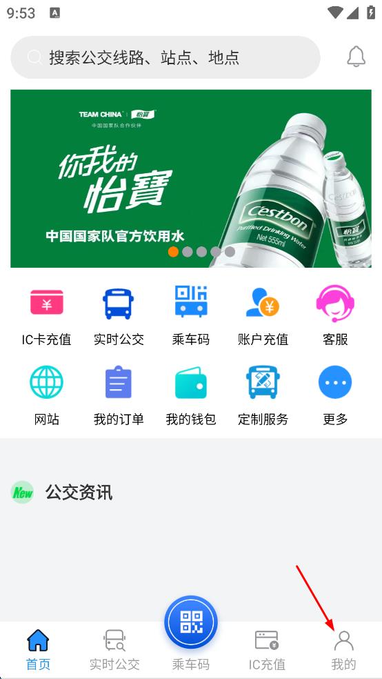 1、进入公交出行软件首页,点击页面底部最右侧“我的”选项,进入个人页面。