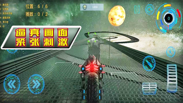 一款很热门的竞技游戏,游戏的赛道都是运用科幻的风格打造的,玩家可以得到最佳的游玩欢乐,游戏的操作都是非常的简单的,玩家可以尽情的发挥自己的驾驶天赋进行游玩,超过一个又一个对手,获得游戏的胜利,收获到大量的奖励,解锁新的摩托车进行游玩,成为里面最出色的摩托车手。
