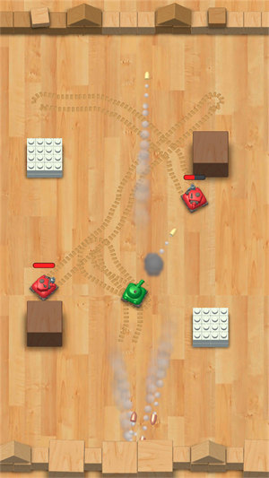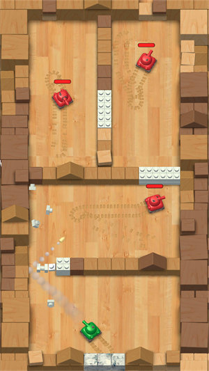 【自由控制】控制自己的坦克,在封闭的场所内进行射击冒险,玩家可以通过简单的操作来控制坦克的移动和攻击,躲避阻碍和更强大的敌人的攻击。