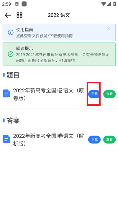 4、最后在该学科试卷的下载界面,我们可以看到试卷还有答案,可以点击对应试卷的右边点击【下载】就可以下载试卷,下载打开之后的试卷是文档形式。