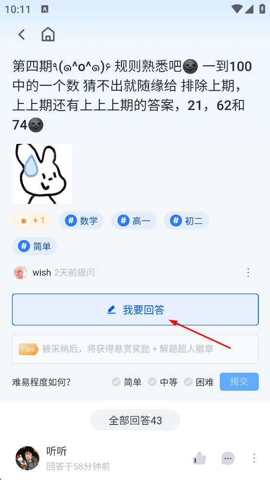 4、点击选中的帖子,进入帖子详情页面,若想参与回答,可点击“我要回答”,然后进行回答内容的编辑与提交。